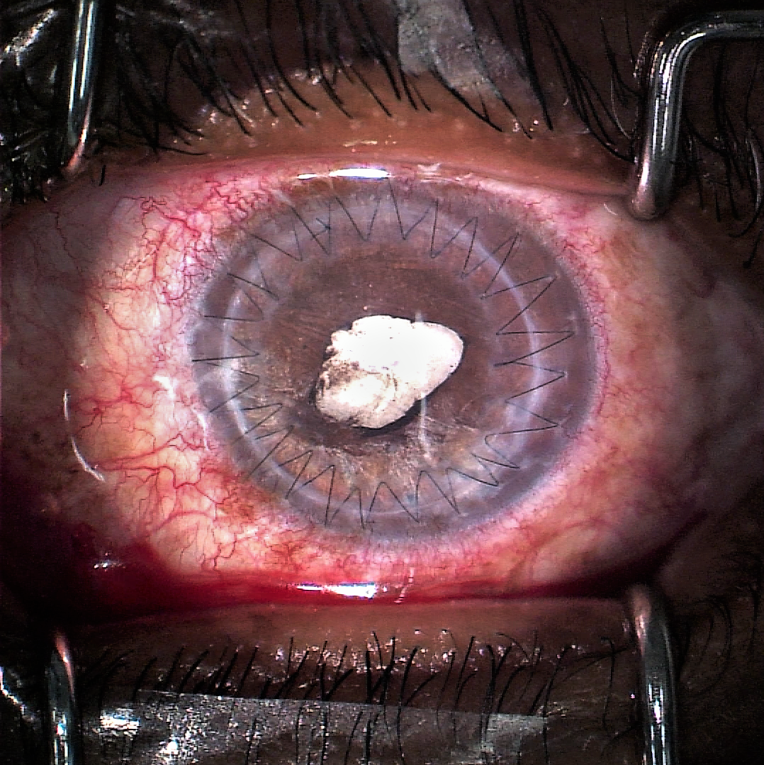 The standard technique for a penetrating keratoplasty involves placing 16 separate, “interrupted” sutures, 360° around the perimeter of the corneal graft. These sutures anchor the graft to the host. The tension of these individual sutures must be meticulously adjusted so they are fairly even. Afterwards, patients often need to wear a hard contact lens in order to see well.